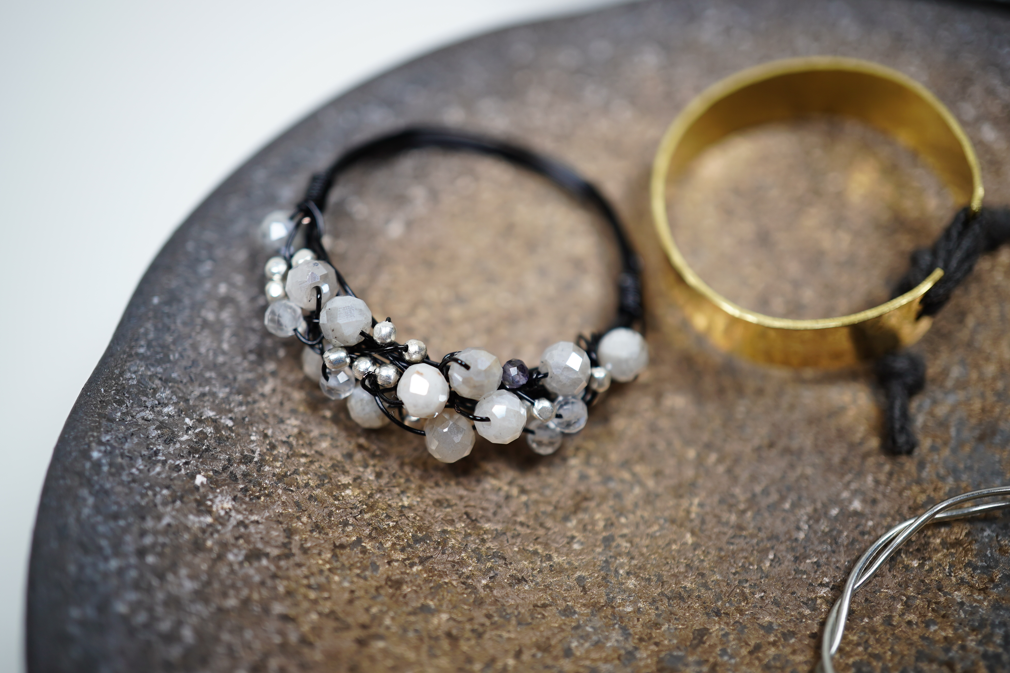 I make necklaces, rings, bangles, earrings, bracelets, anklets, pearl tops, head pearl jewelry, waist beads, hair accessories, window and door jewelry breakers.